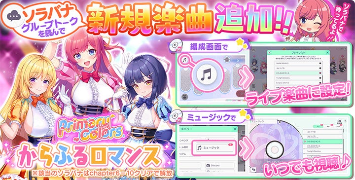 Primary Colorsの新曲「からふるロマンス」が実装され、MVも公開。