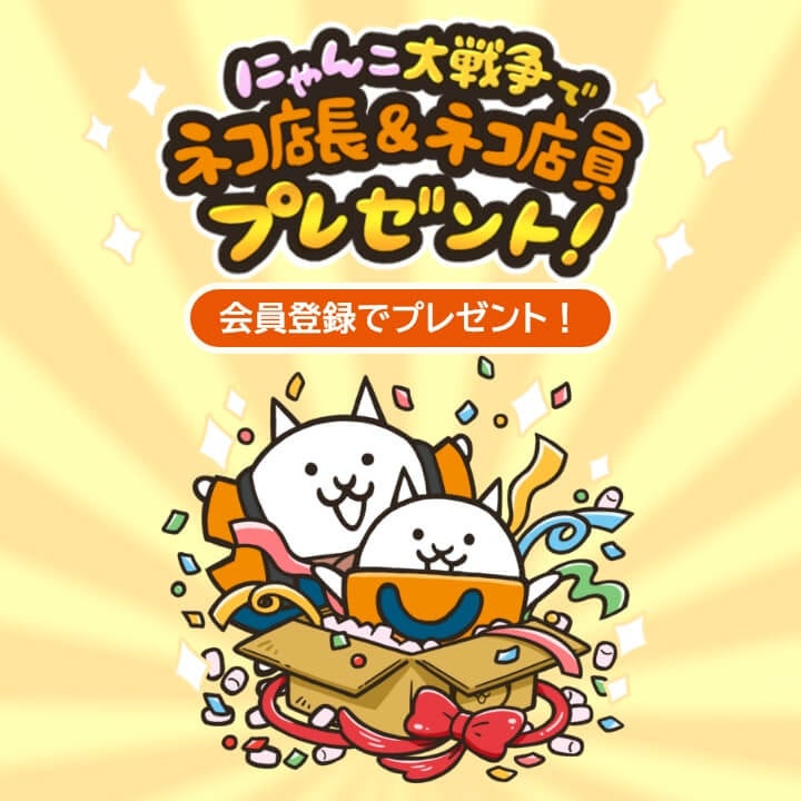 - 「にゃんこ大商店オンライン」会員登録で限定キャラプレゼントも。