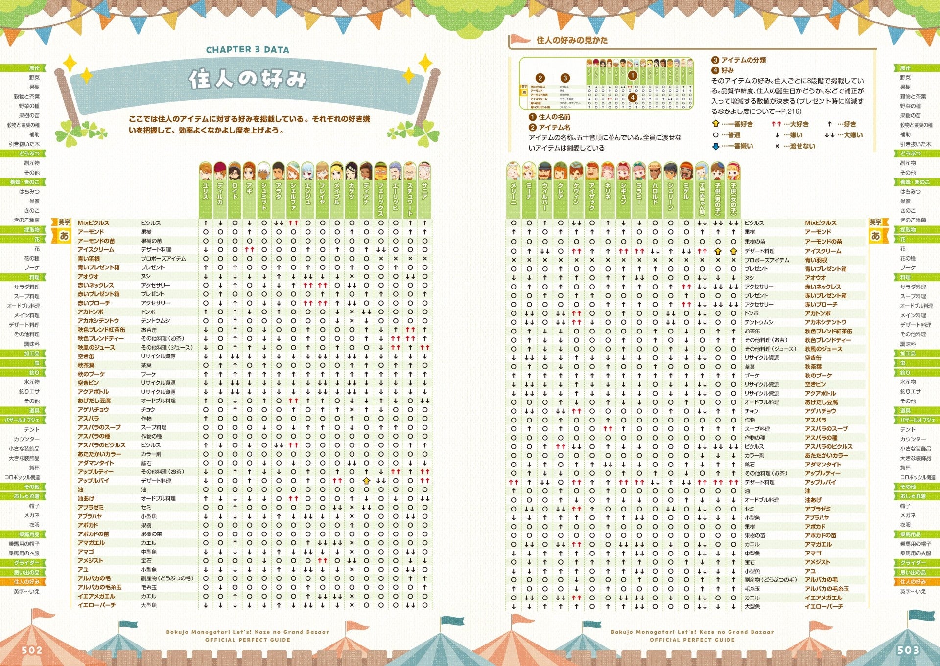 - 牧場生活、住人情報、データなど、ゲームを隅々まで楽しむための情報が満載。
