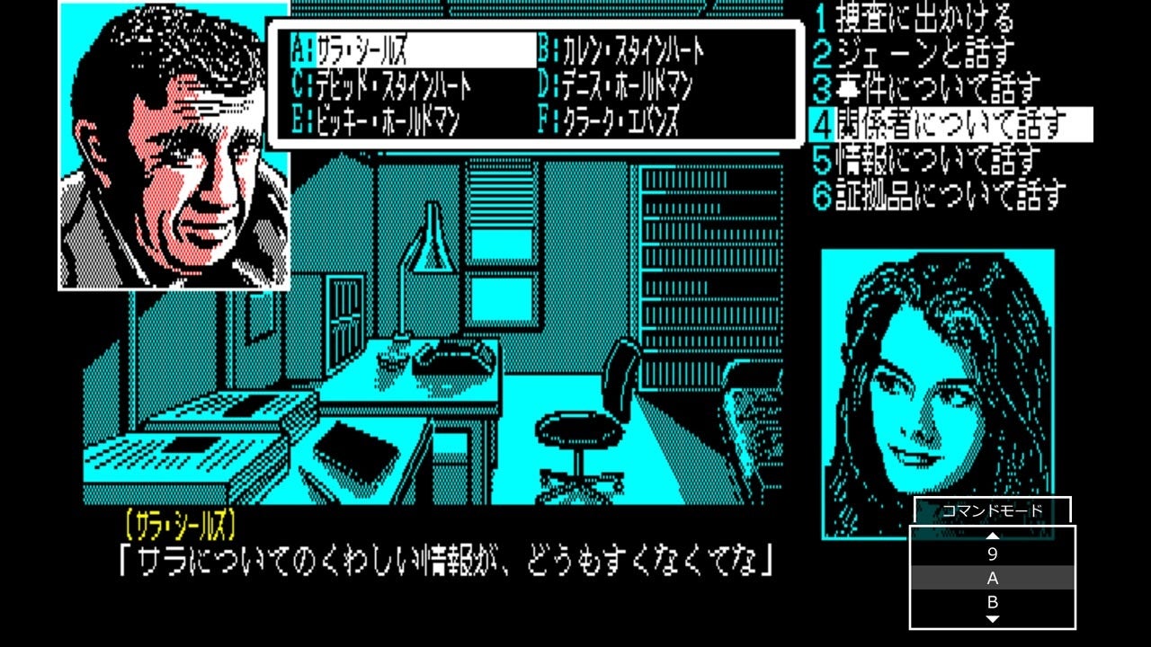- 推理コマンドを駆使して事件を解決するアドベンチャーゲーム。