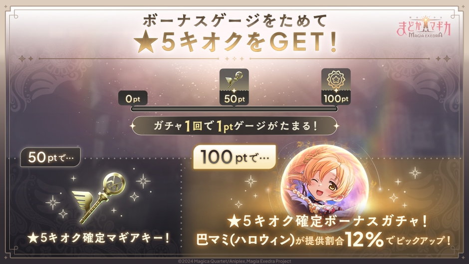 - 新限定★5キオク「ベベ・オー・ランタン」巴マミが登場するピックアップガチャ開始。