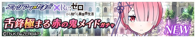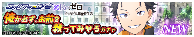 - コラボガチャに「ナツキ・スバル」「エミリア」「レム」「ラム」が登場。