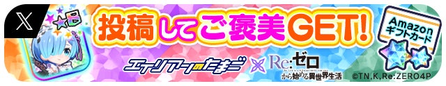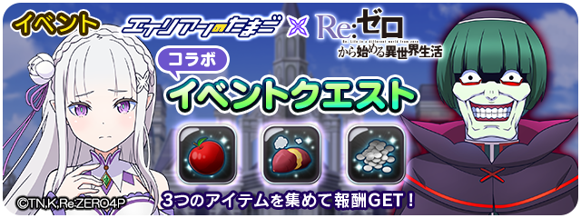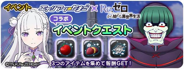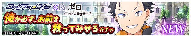 スマートフォン向けゲームアプリ『エイリアンのたまご』が、大人気TVアニメ『Re:ゼロから始める異世界生活』とのコラボイベントを開催します。