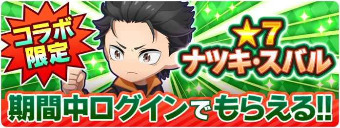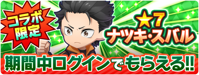 ログインで「ナツキ・スバル(★7)」と宇宙石最大1500個がもらえます。
