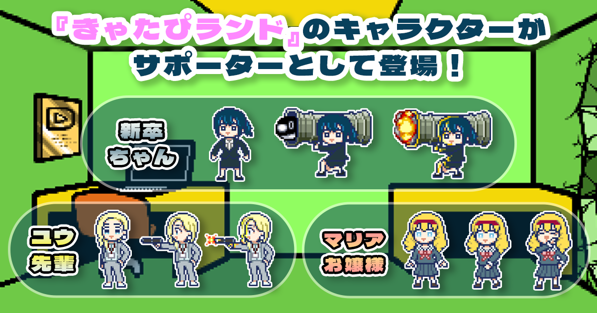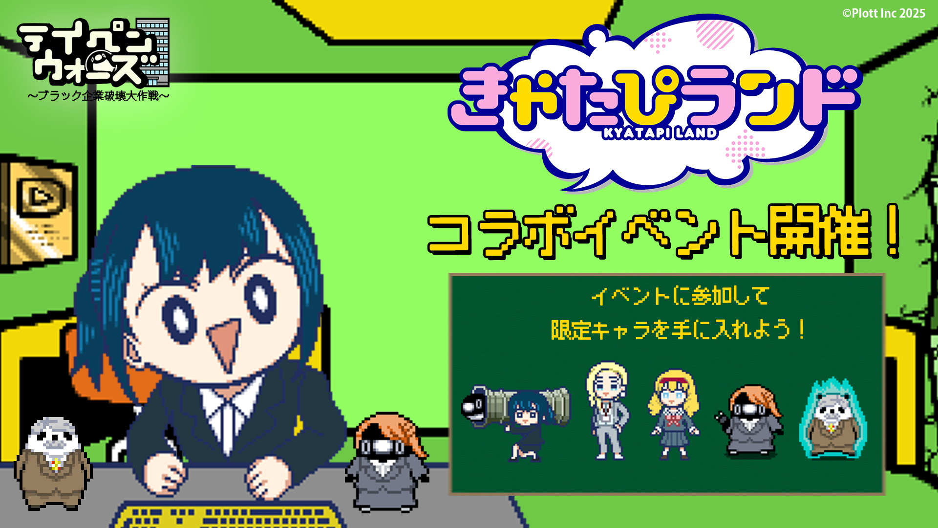 また、Plott Gamesが運営する『テイペンウォーズ~ブラック企業破壊大作戦~』にて『きゃたぴランド』に関するコラボイベントを10月31日0:00から11月23日23:59まで開催。