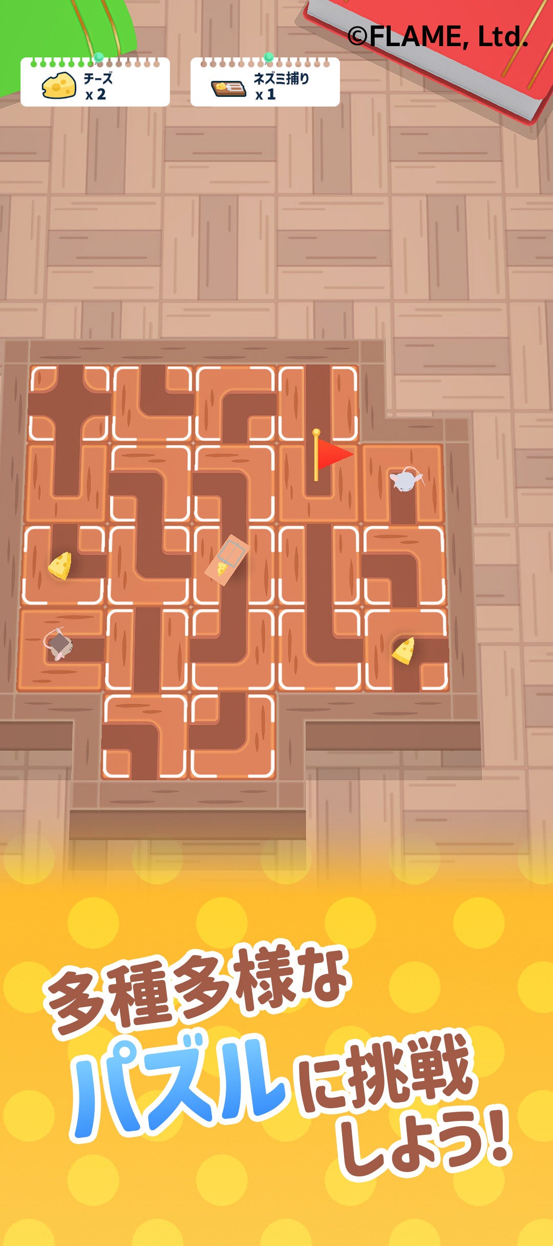 プレイヤーは、かわいいネズミを操作し、パズルを解きながらゴールを目指す。
