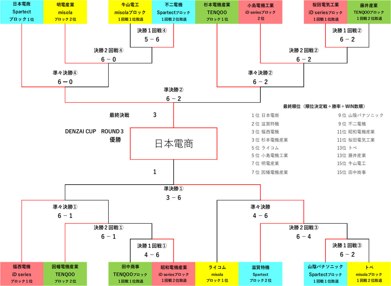 - 全日電材連主催「DENZAI CUP」~ROUND3~で日本電商が優勝。