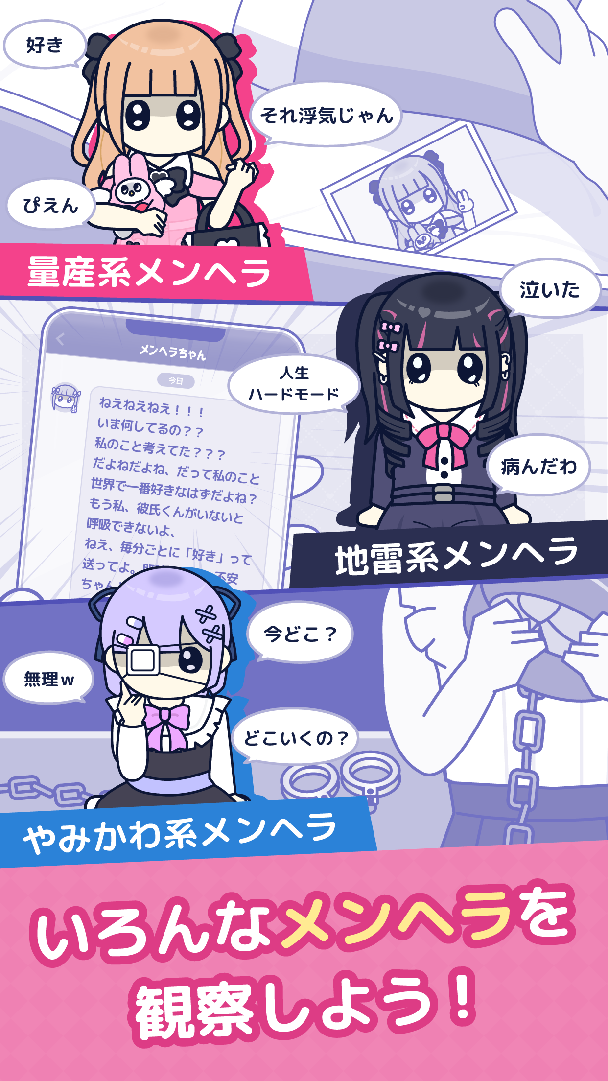 - 病みかわ彼女を育てる育成ゲーム『メンヘラちゃん』が配信開始。