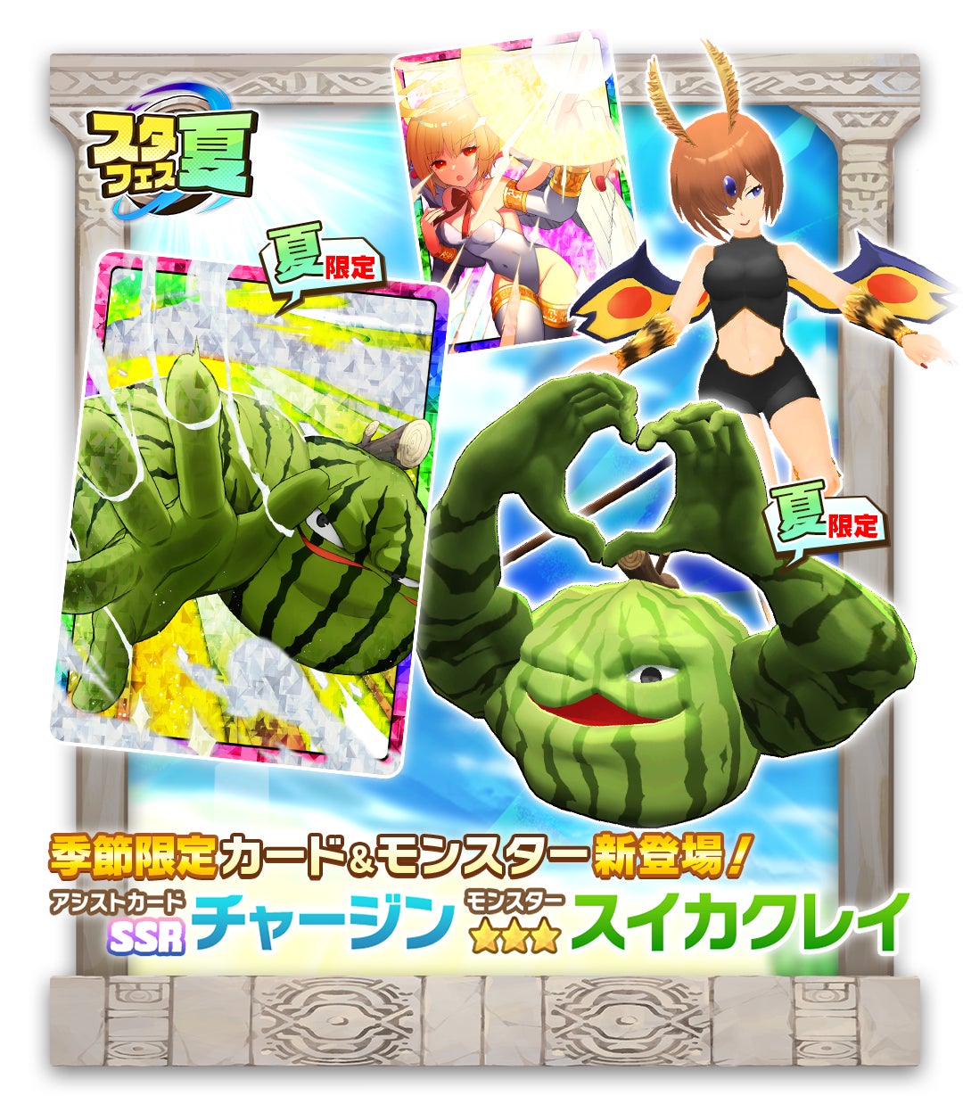 LINE株式会社は、コーエーテクモゲームスが手掛ける「モンスターファーム」の最新スマートフォン向けゲームアプリ「LINE:モンスターファーム」にて、ガチャイベント「スタフェス(夏)」や様々なゲーム内イベントを開催します。