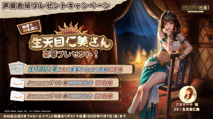 また、CV公開記念として、2025年11月2日(日)~2025年11月7日(金)の期間で抽選イベントが開催され、生天目仁美さんのサイン入り色紙やAmazonギフト券がプレゼントされる。