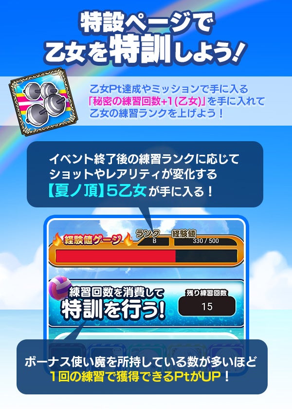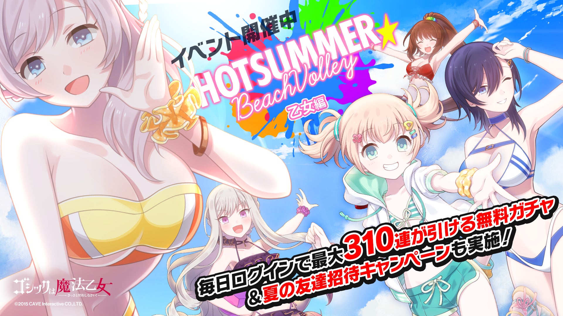 株式会社ケイブは、シューティングゲームアプリ『ゴシックは魔法乙女~さっさと契約しなさい!~』にて、夏の大型イベント第1弾『ホットサマー☆ビーチバレー乙女編』を開催しています。