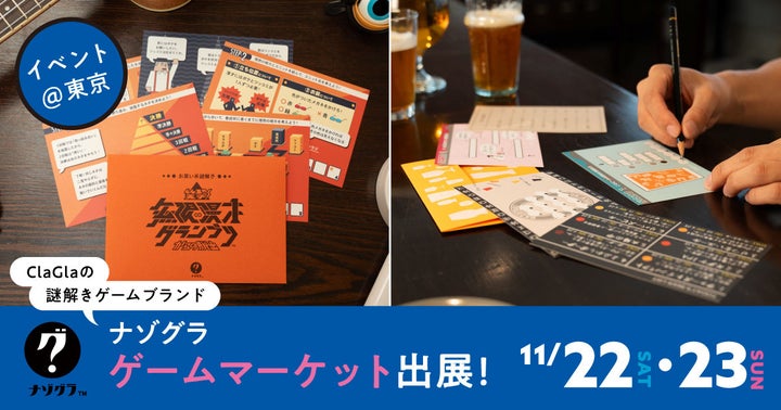 札幌のボードゲーム・謎解きゲームメーカーClaGla(株式会社クラグラ)の謎解きゲームブランド「ナゾグラ」が、2025年11月22日(土)・23日(日)に幕張メッセで開催される「ゲームマーケット2025秋」に出展する。