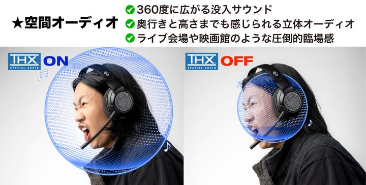 THX®認証の空間オーディオとヘッドトラッキング、クラッシャーベースによる重低音が融合し、没入感を高める。