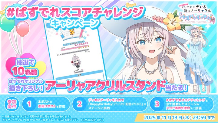 公式Xでは、誕生日記念のキャンペーンとして、ゲーム内イベントのスコアチャレンジを実施し、参加者の中から抽選でオリジナルグッズがプレゼントされます。