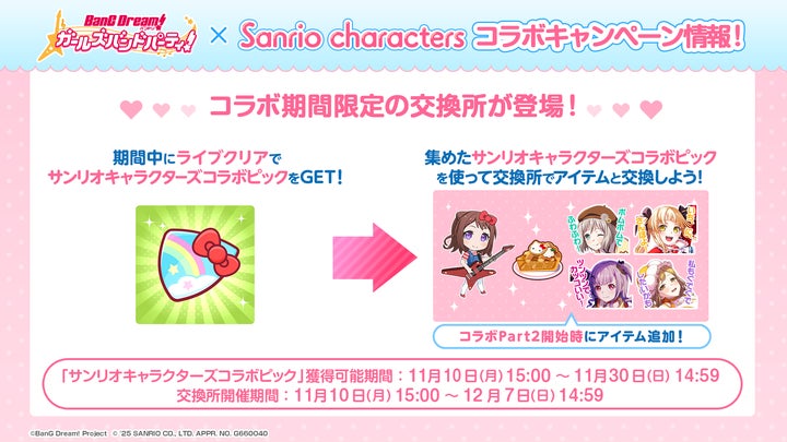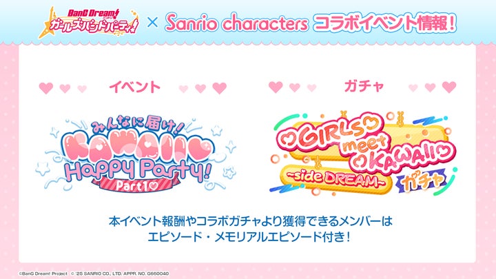 スマートフォン向けゲーム「バンドリ! ガールズバンドパーティ!」(ガルパ)とサンリオキャラクターズのコラボ情報が発表されました。