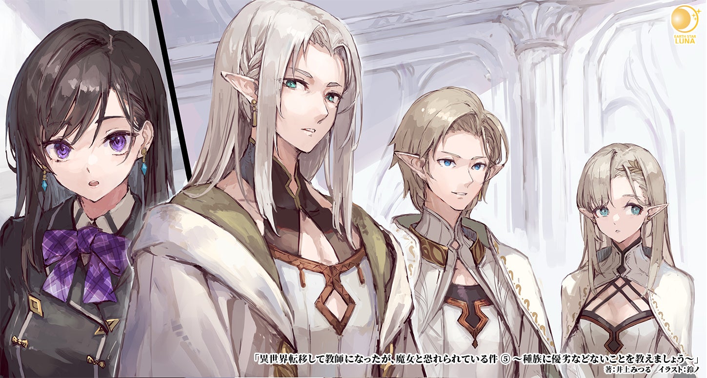 - 異世界転移した主人公がエルフ至上主義を正すために奮闘する「異世界転移して教師になったが、魔女と恐れられている件~種族に優劣などないことを教えましょう~」
