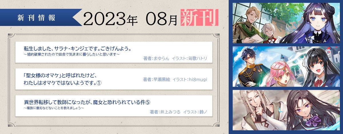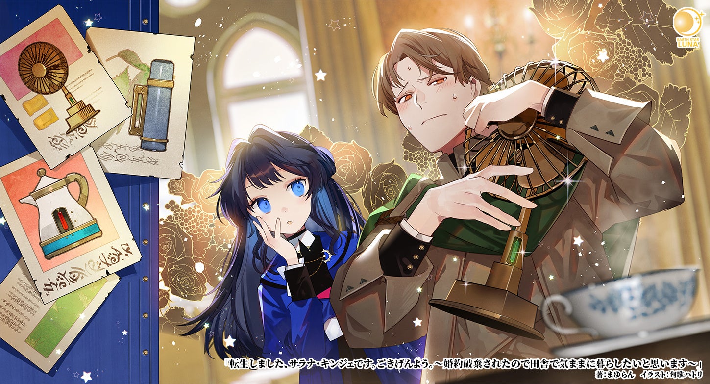 - 新刊の一つは「転生しました、サラナ・キンジェです。ごきげんよう。~婚約破棄されたので田舎で気ままに暮らしたいと思います~」