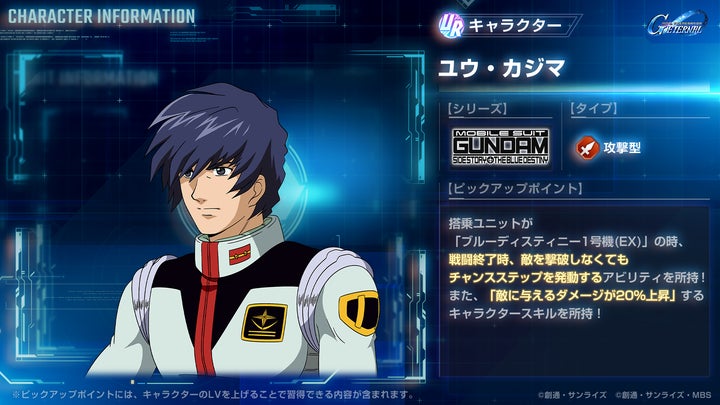 - UR「ブルーディスティニー1号機(EX)」/UR「ユウ・カジマ」などがピックアップガシャに登場。