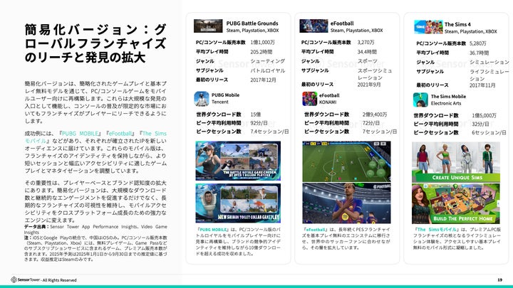 モバイルのリーチを活かし、PC/コンソールのプレミアム体験に繋げる戦略が重要。