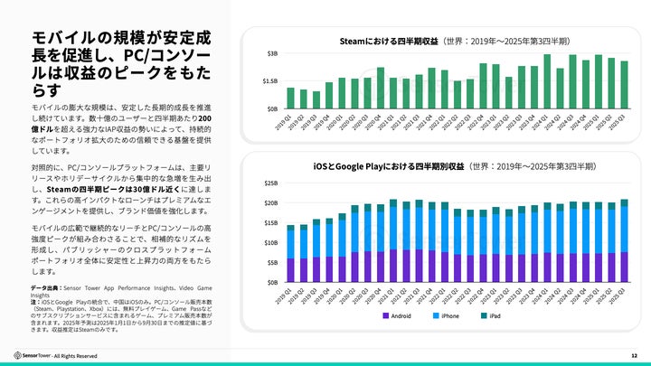 2025年のゲーム市場は、モバイルのグローバルリーチとPC/コンソールの高品質な体験が中心となる。