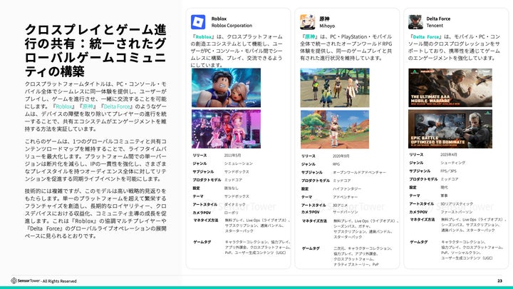 モバイルとPC/コンソールのクロスプラットフォームゲームに関するレポートの要約。