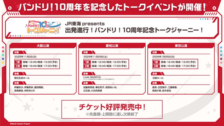 さらに、RAISE A SUILENとRoseliaのオーディオ・ビジュアルフェアや、バンドリ!10周年記念トークイベントも開催される。