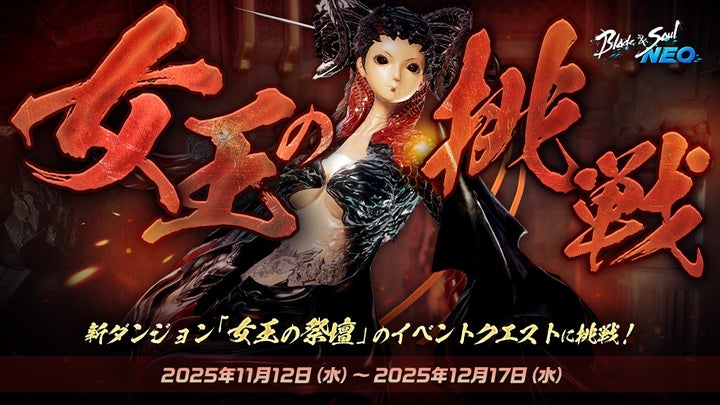 PCオンラインゲーム『ブレイドアンドソウルNEO』は、2025年11月12日(水)に最新アップデート「女王の祭壇」を実施する。
