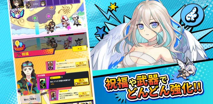 - 放置RPGで、フラグちゃんを成長させ、てんしを倒してフラグを回収。