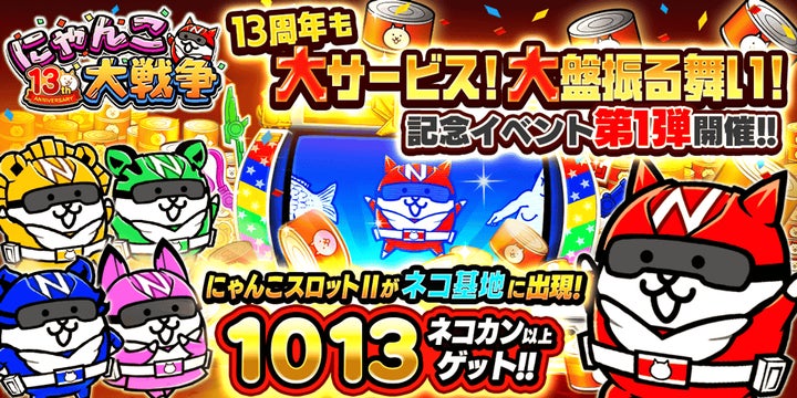 スマートフォン向けゲームアプリ「にゃんこ大戦争」が13周年を記念して、2025年11月13日より記念イベント第1弾を開催する。