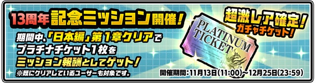 また、ログインスタンプや、日本編クリアでプラチナチケットが貰えるミッションも実施。