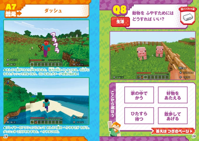 • クイズ形式で『マイクラ』の世界を学べる攻略本。