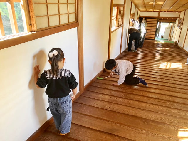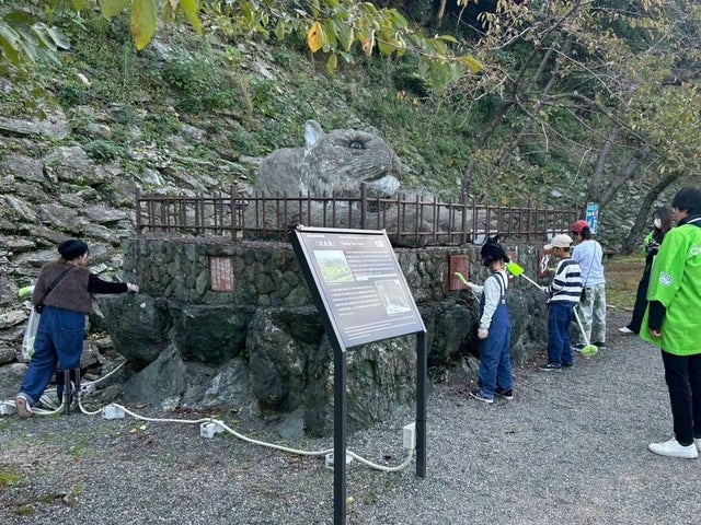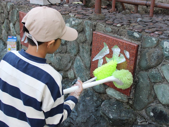 - 小学生と親子が参加し、和歌山城内の清掃活動とゲーム内のお宝探しを体験。