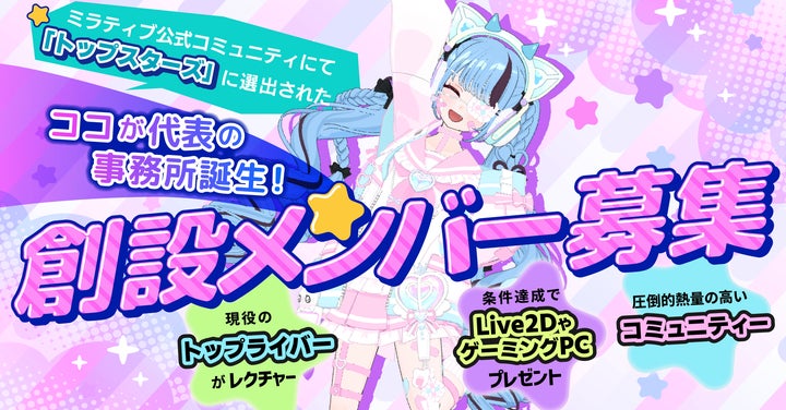 ココは、Mirrativで活躍するトップライバーであり、事務所では現役トップライバーによるレクチャーや、やる気を重視したコミュニティが特徴。