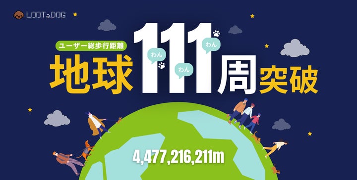 • LOOTaDOGのユーザー総歩行距離が地球111周分を突破。