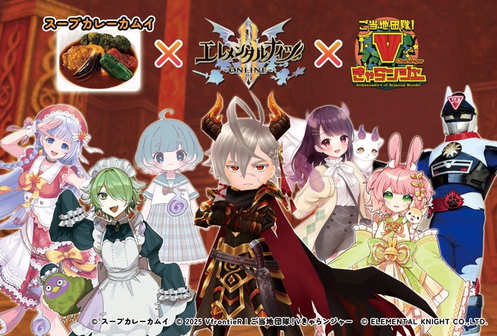 スマートフォン向けMMORPG『エレメンタルナイツオンラインR』と、スープカレー専門店「スープカレーカムイ」、ご当地VTuber「ご当地団隊!Vきゃらンジャー」のコラボキャンペーンが2025年11月16日(日)から開催されます。