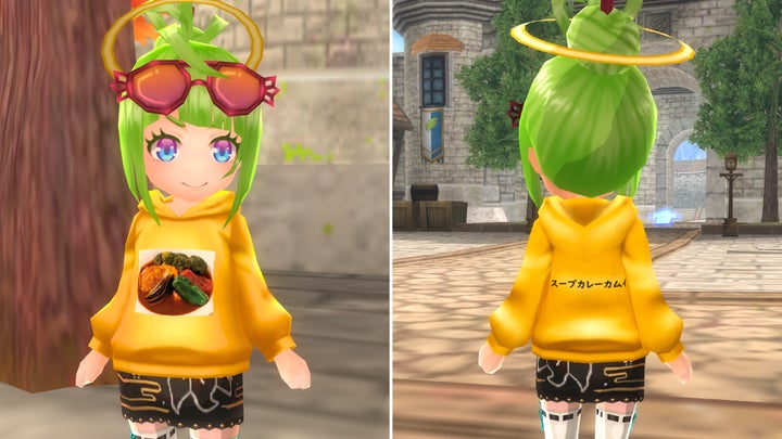 ゲーム内では、コラボパネルに話しかけると「スープカレーカムイコラボパーカー(白)」がもらえます。