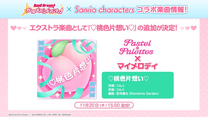 また、Pastel*Palettesとマイメロディによるエクストラ楽曲『♡桃色片想い♡』が追加。