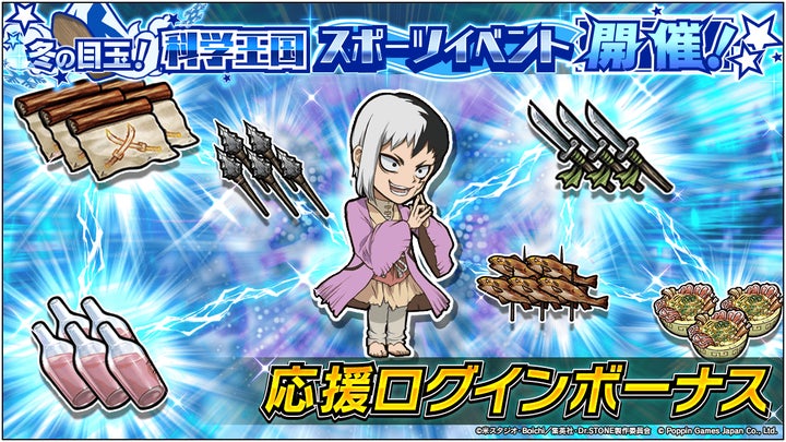- 『Dr.STONE バトルクラフト』にて復刻イベント「[復刻]冬の目玉!科学王国スポーツイベント開催!」が開催。