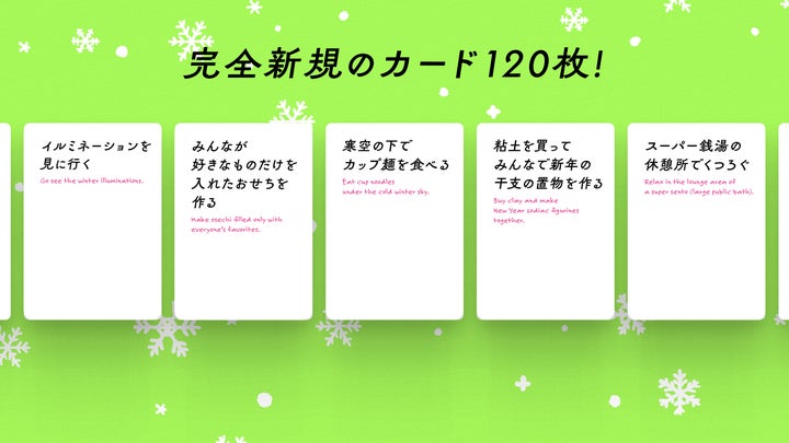 SNSで話題沸騰中の『これから私たちは、』は、みんなのやりたいことを決める協力ゲームで、今回の冬季限定版は冬にちなんだカードが満載。