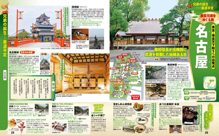 内容は、秀長の生い立ちから天下統一までのストーリーを図解と写真でわかりやすく紹介し、ゆかりの地を「まっぷる」ならではのガイドページで紹介。