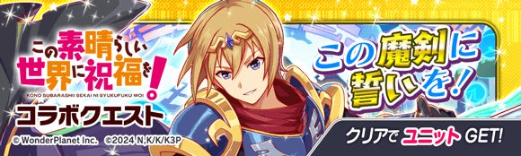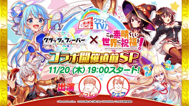 ワンダープラネット株式会社は、iOS/Android向けゲーム『クラッシュフィーバー』において、『この素晴らしい世界に祝福を!』とのコラボ開催を発表しました。