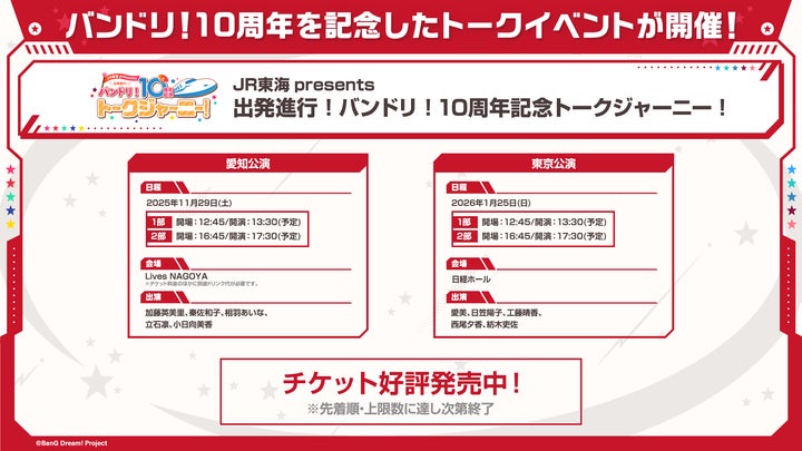 さらに、10周年を記念したトークイベントや、RAISE A SUILENとRoseliaのオーディオ・ビジュアルフェアも開催中です。