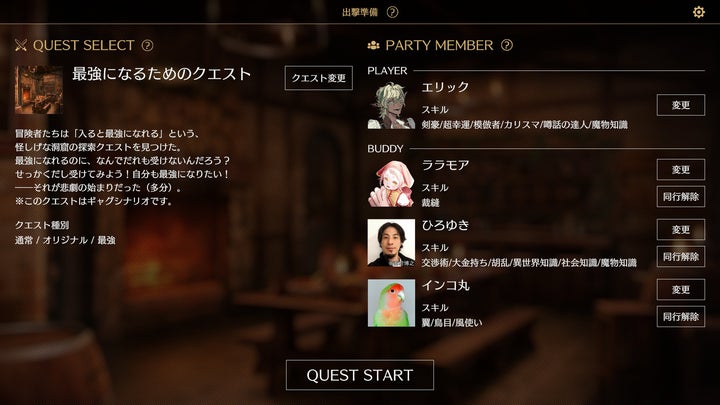 作成したキャラクターはSNSで共有可能で、クエストログも共有できます。