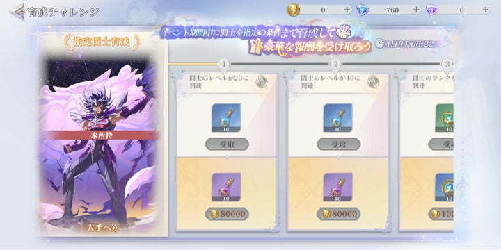 また、育成チャレンジも同時開催され、「冥衣・デスマスク」を指定の条件まで育成すると豪華報酬がもらえます。