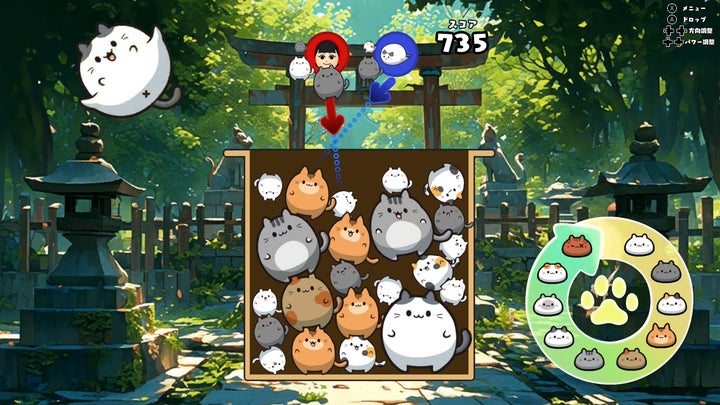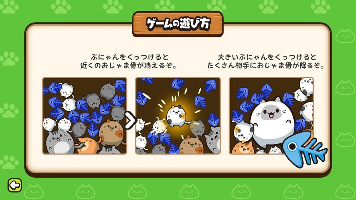本作は、にゃんてん島の猫「ぷにゃん」と楽しむ落ちものパズル&マージゲームで、マウス操作に対応し、新モード「∞ぷにぷに」も追加されています。