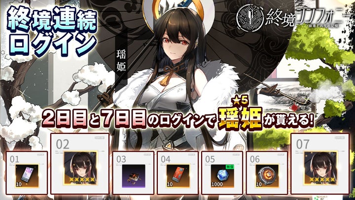 正式サービス開始を記念し、バリューポイントや経験値カードなどの配布、7日間の連続ログインで★5『瑶姫』を獲得できるイベント、最大4,090回分のガチャを引ける還元特典イベントも開催。