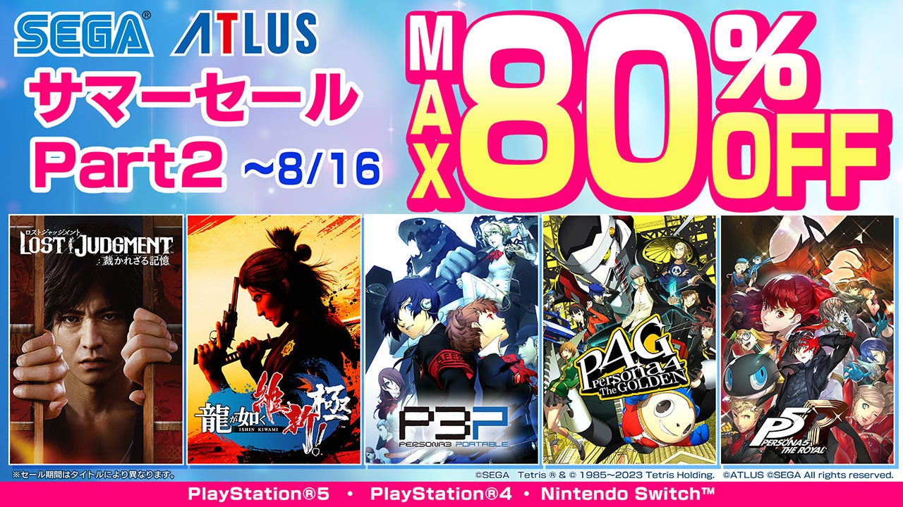 株式会社セガは、現在「セガ サマーセール Part2」をPlayStation™Storeおよびニンテンドーeショップで開催しています。