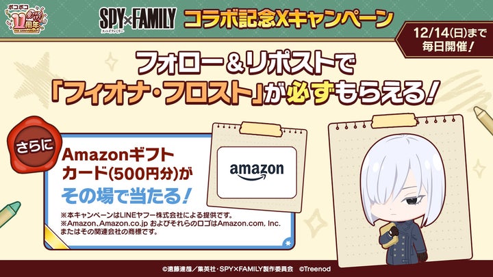 11周年を記念した豪華賞品が当たるキャンペーンや、コラボ限定LINEスタンプの配信、TVCMの放映も行われる。