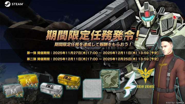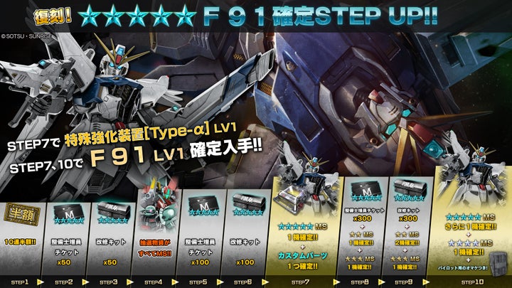 実装記念キャンペーンとして、期間限定任務や、デスティニーガンダム確定STEP UP抽選配給、カスタムパーツ確定STEP UP抽選配給も開催。