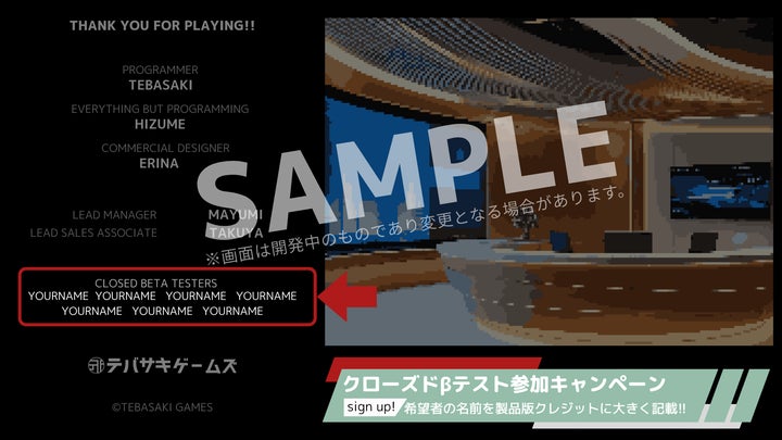 クローズドβ参加者は、正式版のエンドクレジットに名前が掲載される特典がある。
